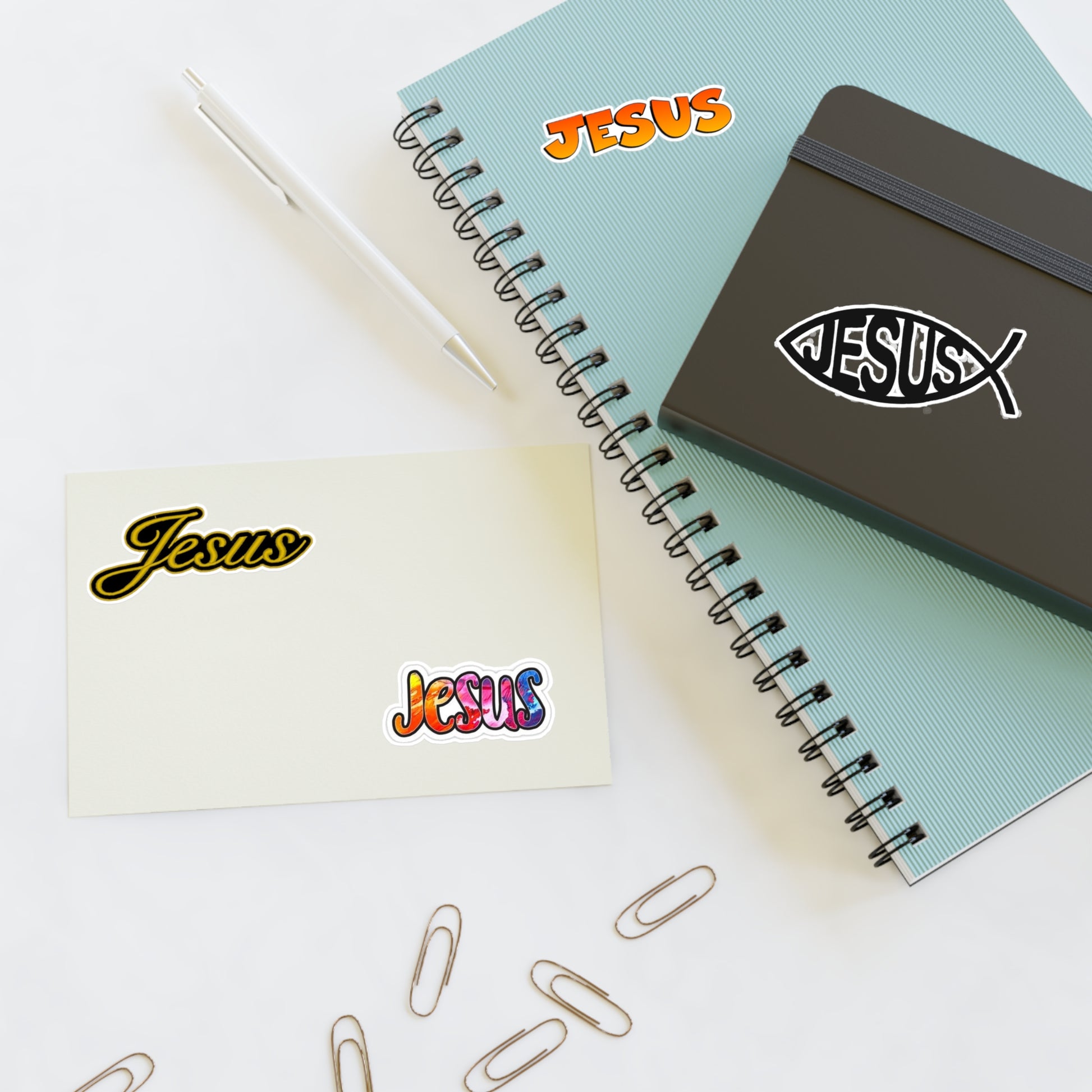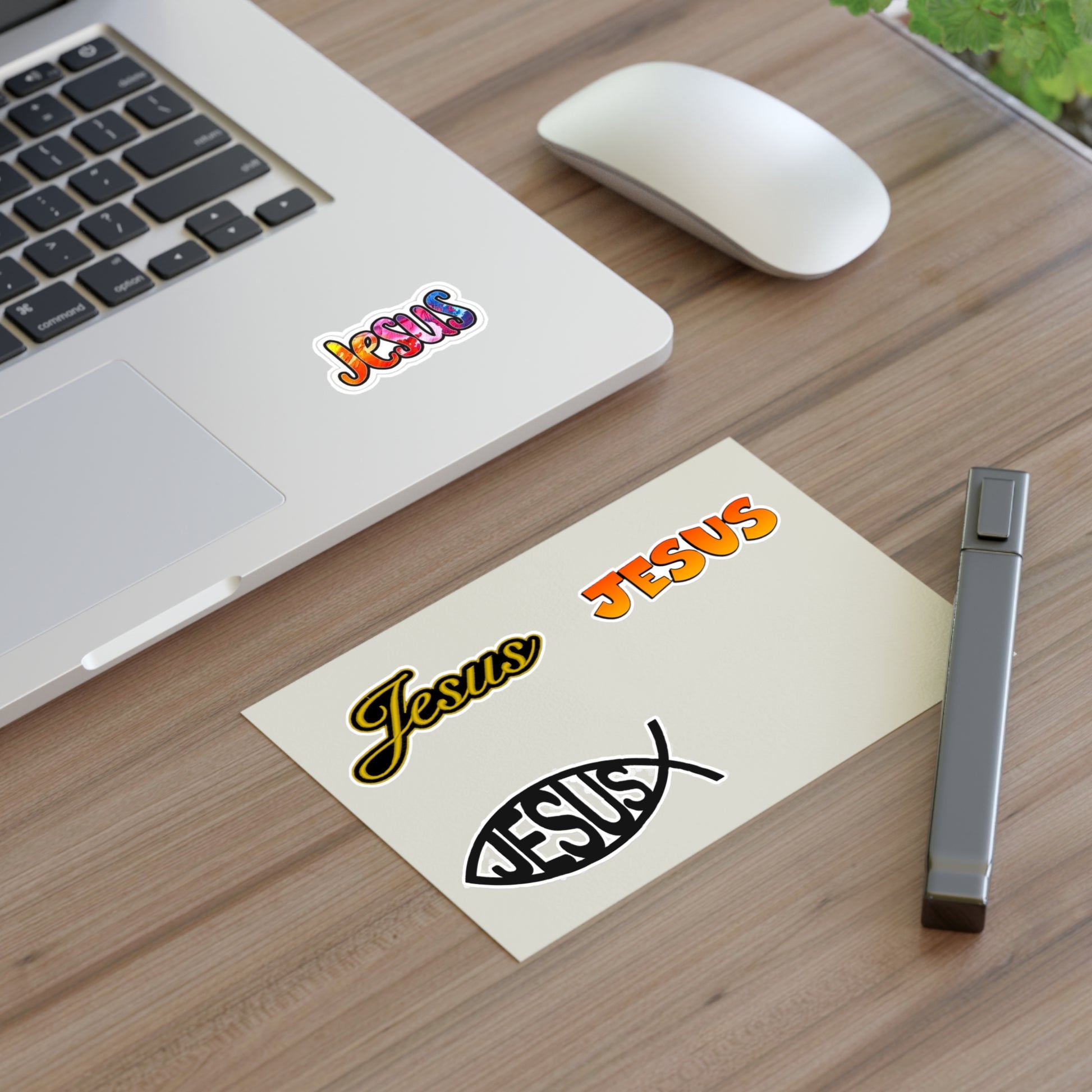 This Vinyl Jesus Sticker Sheet gives you the perfect marketing material whether it's for your biblical notes, art work, or a school project. With a vinyl construction and full design/shape customizability, you can use these stickers to add a nice touch to your journal bible or use them to tell the story of Jesus. Available in white, holographic, and transparent versions.